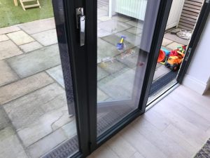 The end door is hanging because it needs to be raised. Most Importantly this is an issue connected to the settle of the extension.