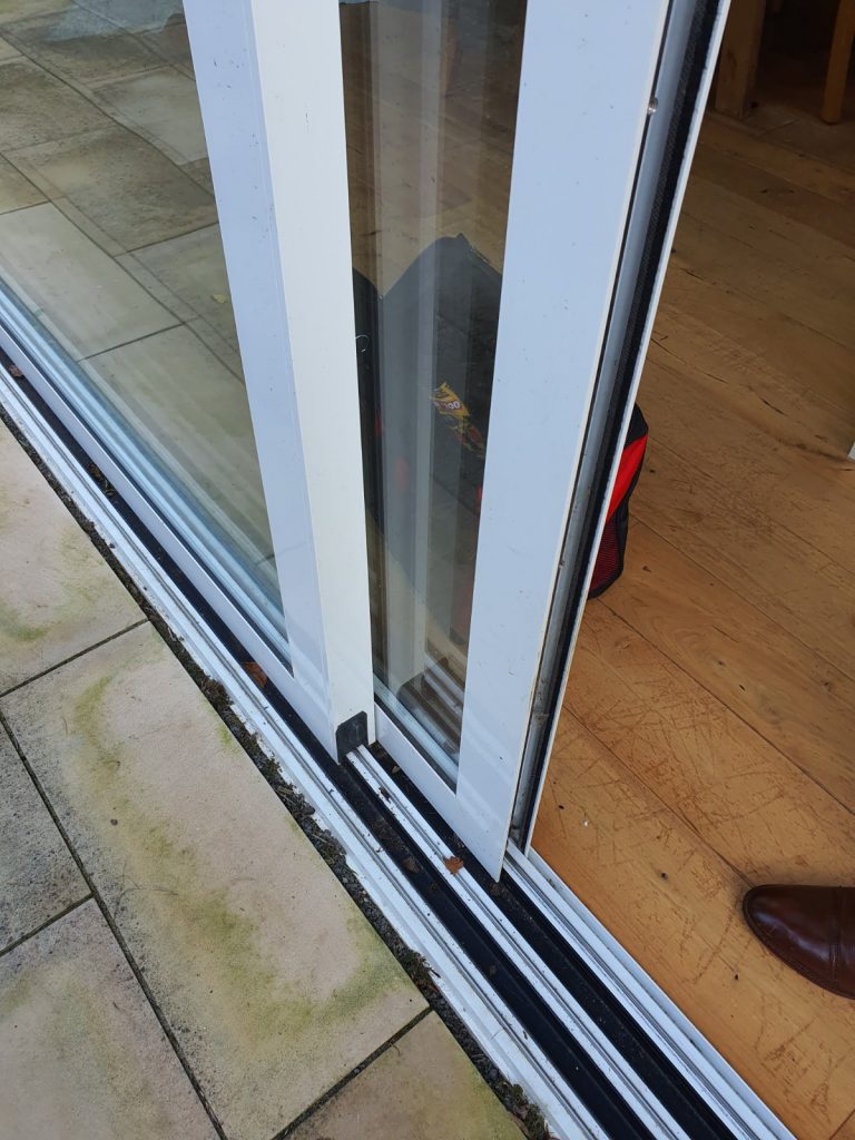 It will take three or four men to remove the door and lay it flat. How to remove and replace the damaged track is a much bigger issue. Because the damaged rib can only be pushed in along the track rather than from above it means that the whole track would need to be removed in order to replace the damaged rib of the track.