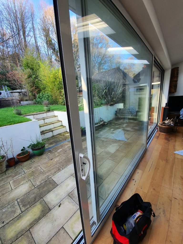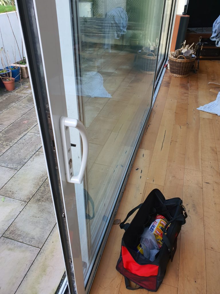 Three panels each panel about 3 m long and 1/2 m tall. The runners for the main door that is being used have become damaged, therefore will need to be replaced. As a result damaging the main wheel support rib on the track. The main door would need to be removed which is very heavy.