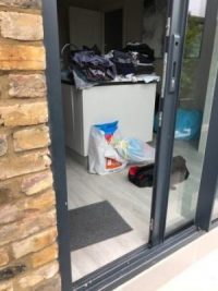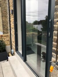 Aluminium sliding doors in Surbiton KT5. In this case during heavy rain, water is getting trapped along the channel of the inside bottom track.