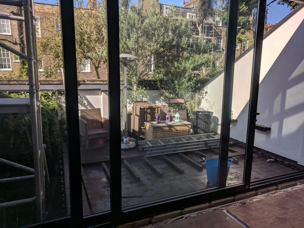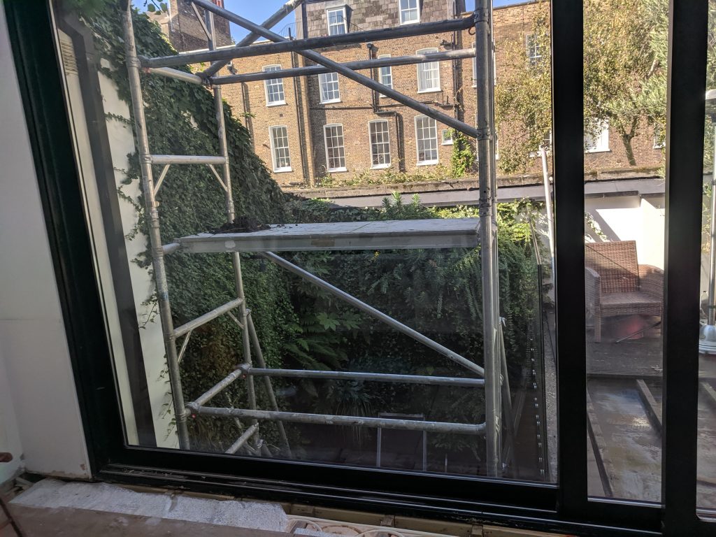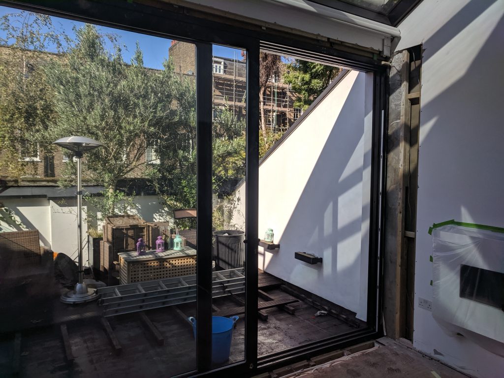 Large Schuco sliding doors, removed in order to facilitate essential building works.