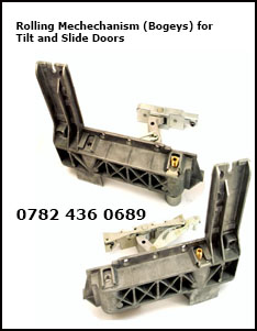 Usually the first thing that our engineers will do is try to determine the manufacturer of the tilt and slide door mechanism. This can usually be found on the actual rollers (bogies) that sit at the bottom of the door by removing the covers and covering strip. This can be difficult as sometimes there are no markings on the rollers.
