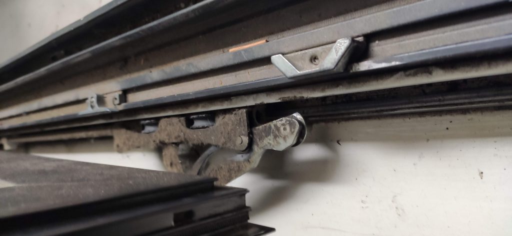 The runners have failed causing the doors to hang too low, therefore they do not close or slide properly. In addition, the runners, comprising bogies and swing arms are to be replaced. The door will be re-aligned for correct operation.